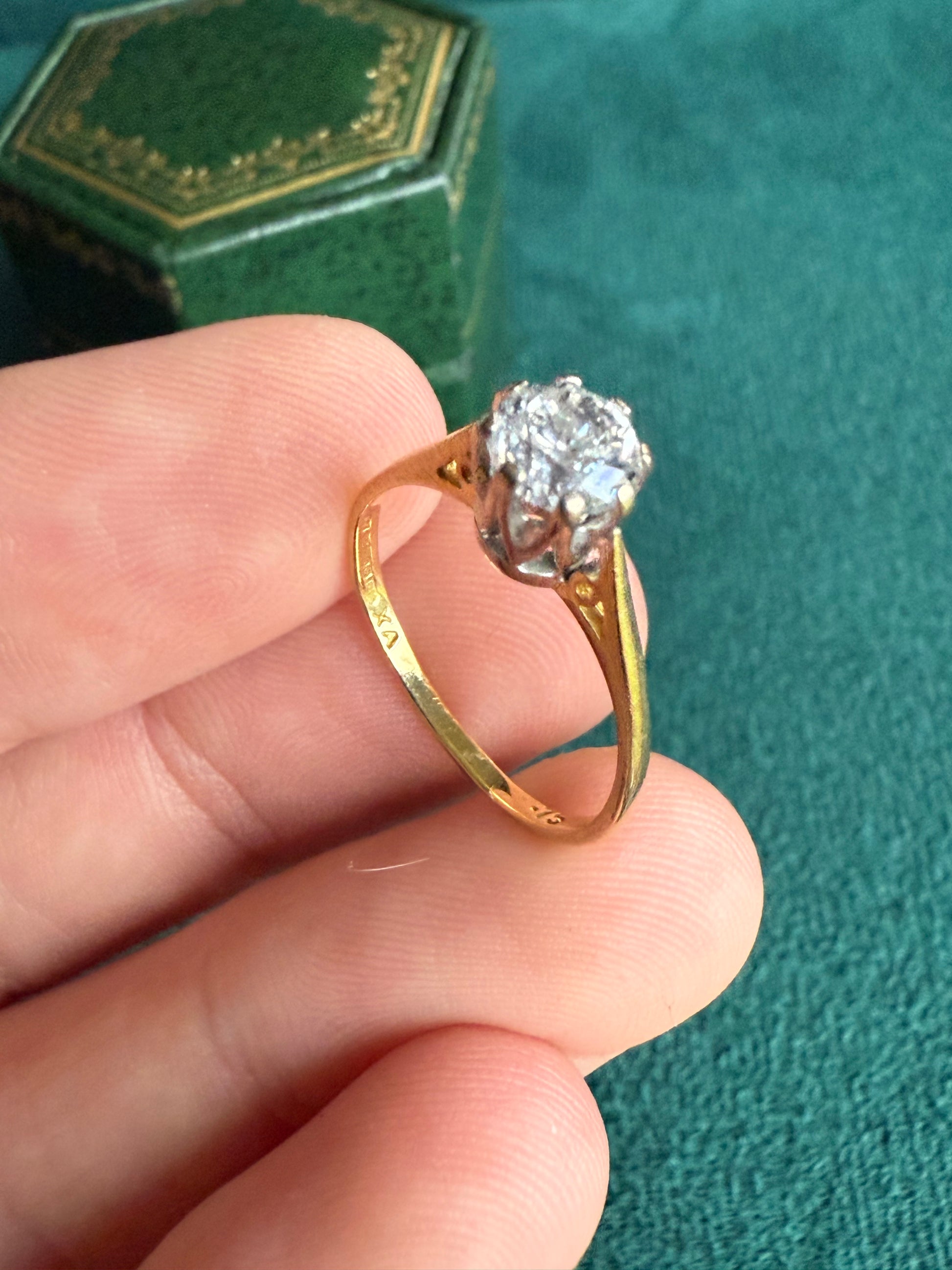 Lovely natural diamond set in platinum claws On an 18 carat gold band