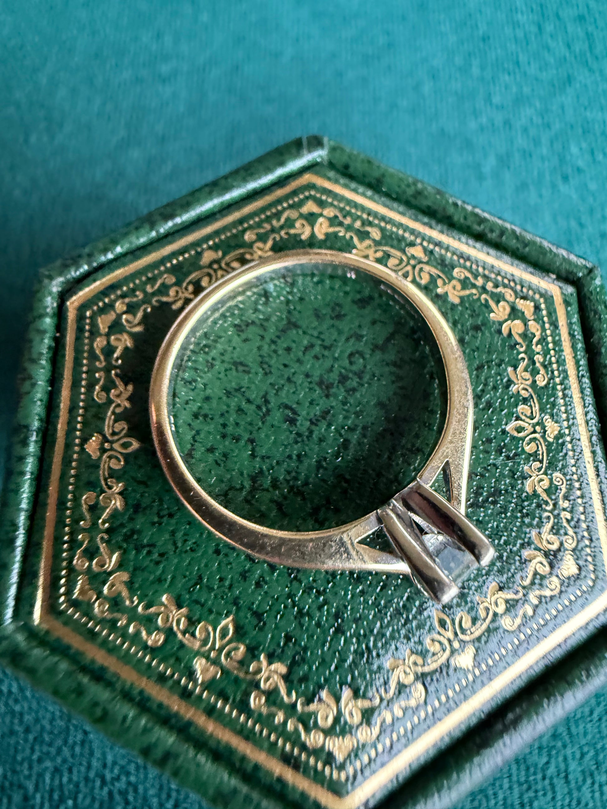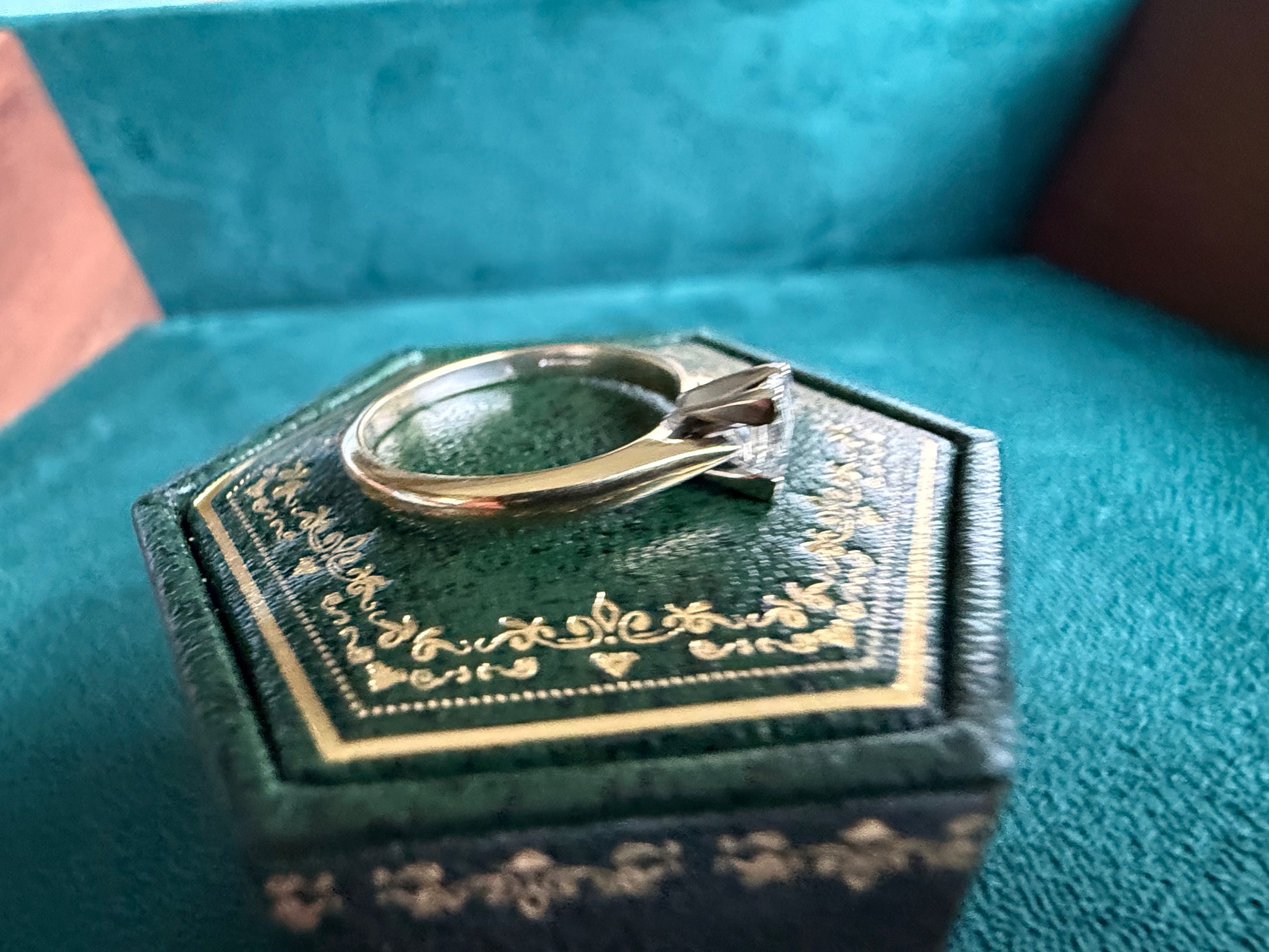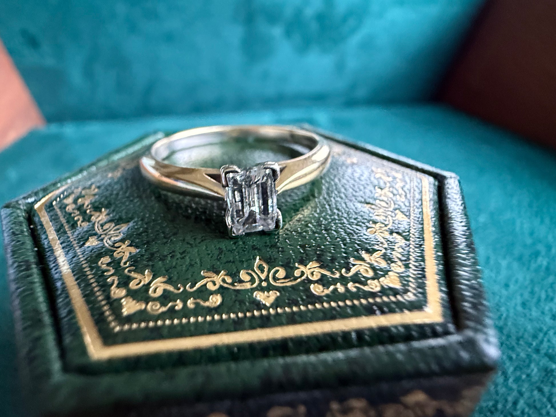 A gorgeous natural diamond set in platinum claws under 18 carat gold band