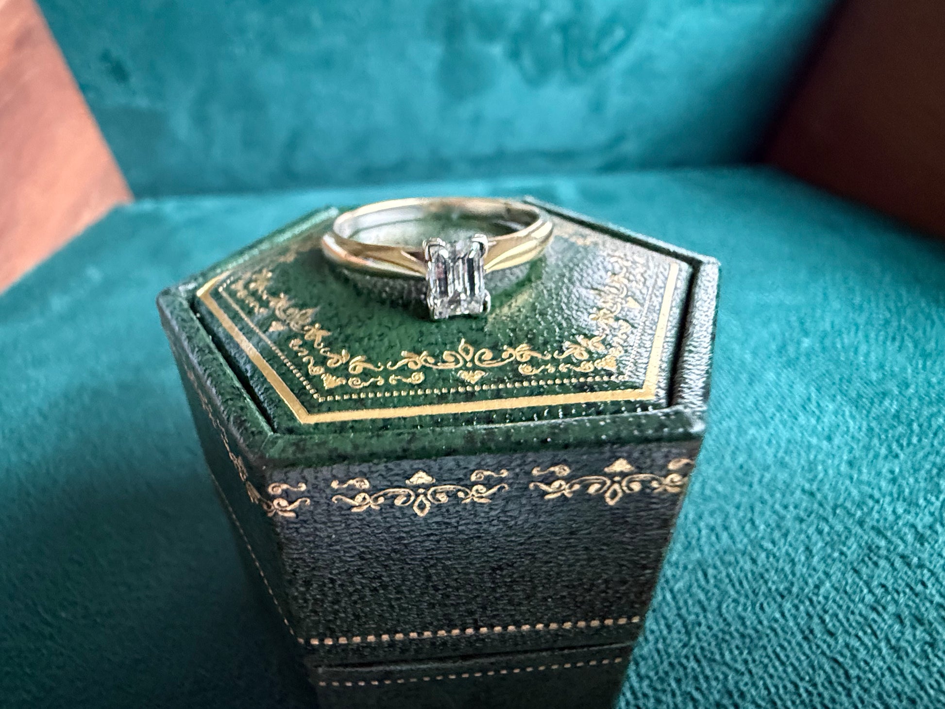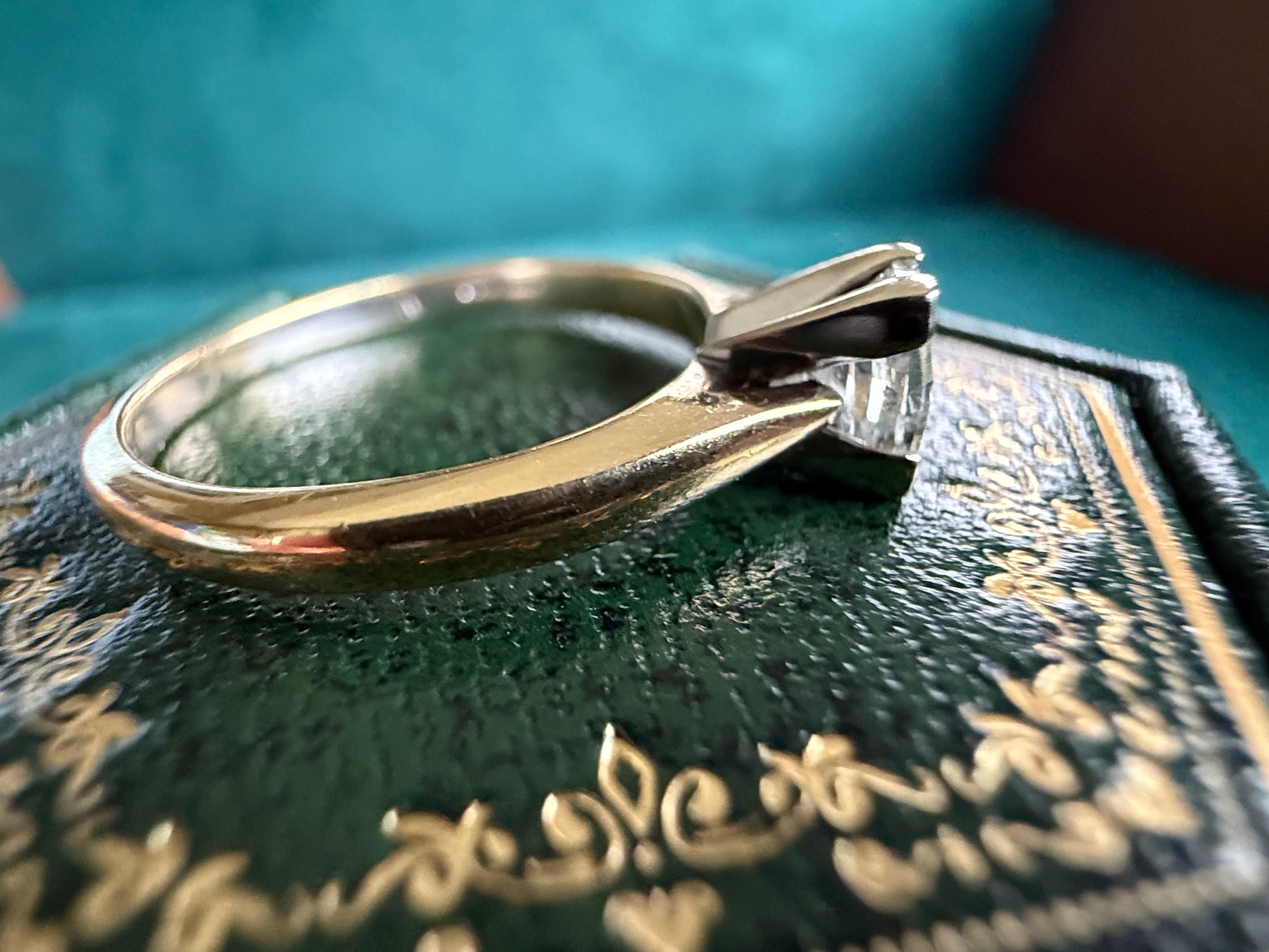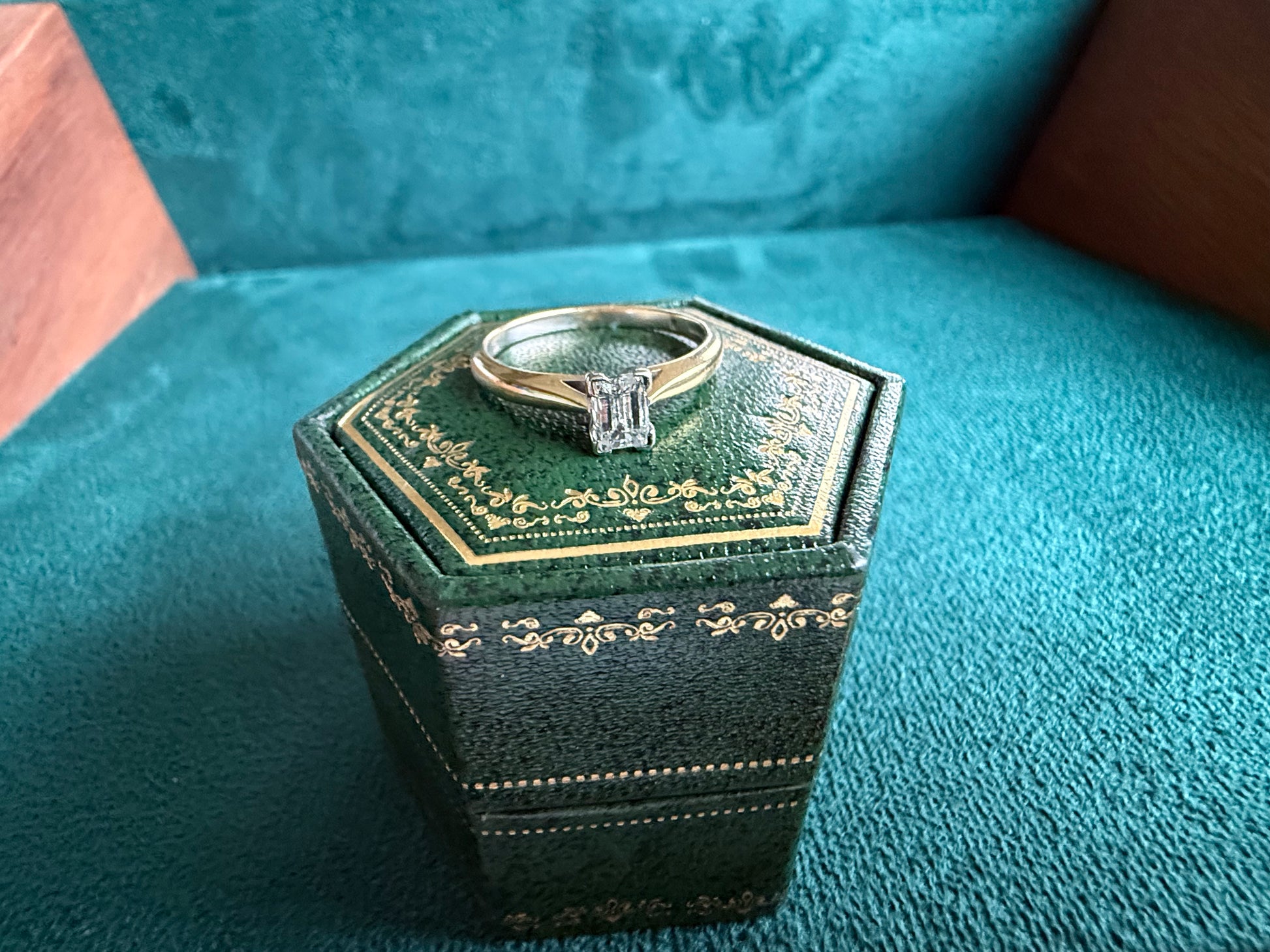 A gorgeous natural diamond set in platinum claws under 18 carat gold band