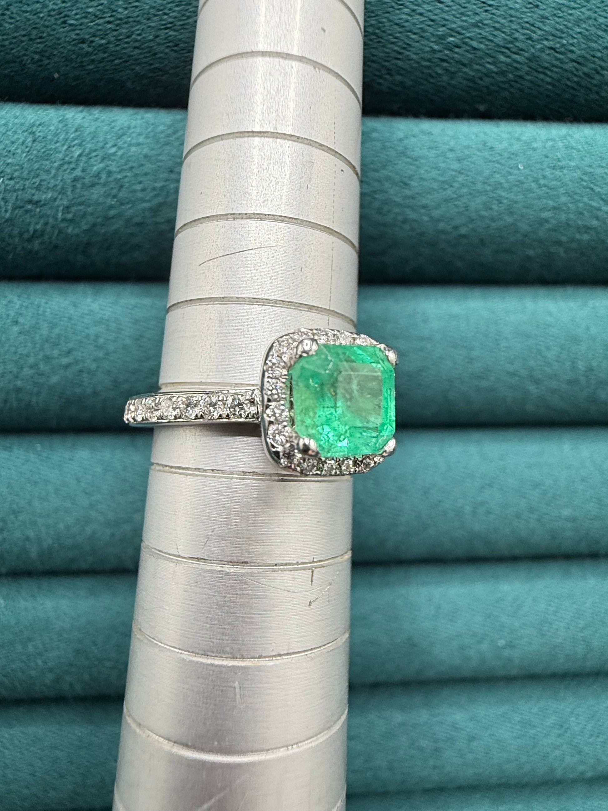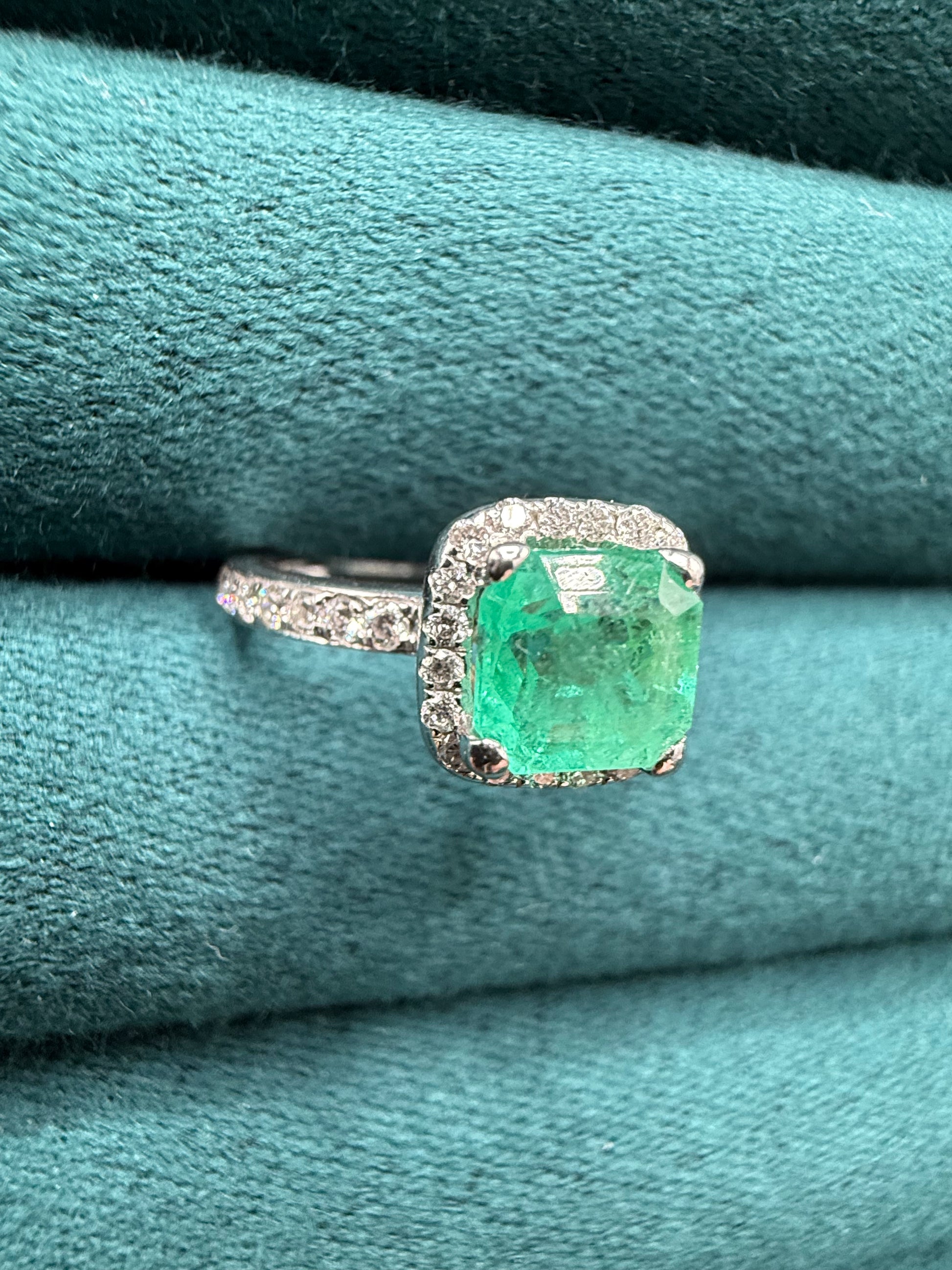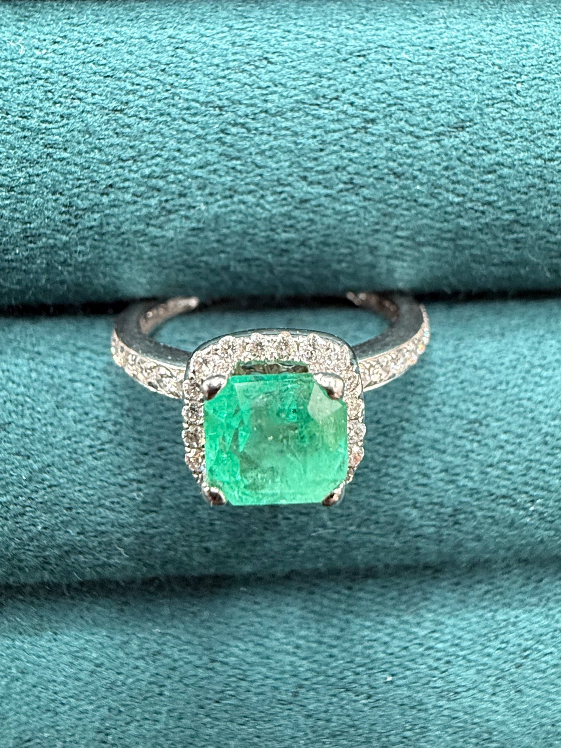 18ct white gold emerald and diamond ring modern