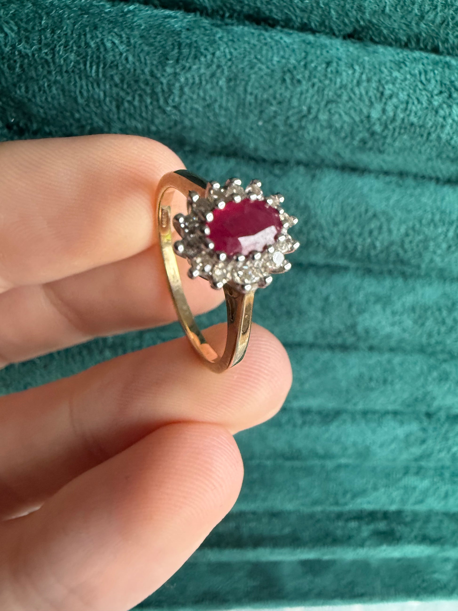 9ct gold Ruby and diamond Cluster style ring
